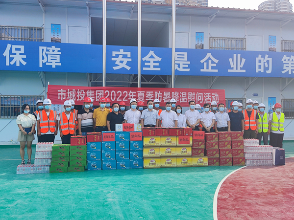 7月12日下午,市城投集团bat365在线登录入口(中国)官方网站总经济师邢耀霖一行来到新建居住项目(国博C4地块)工程总承包(EPC)项目开展送清凉活动。房产集团bat365在线登录入口(中国)官方网站总经理陈峻陪同慰问。