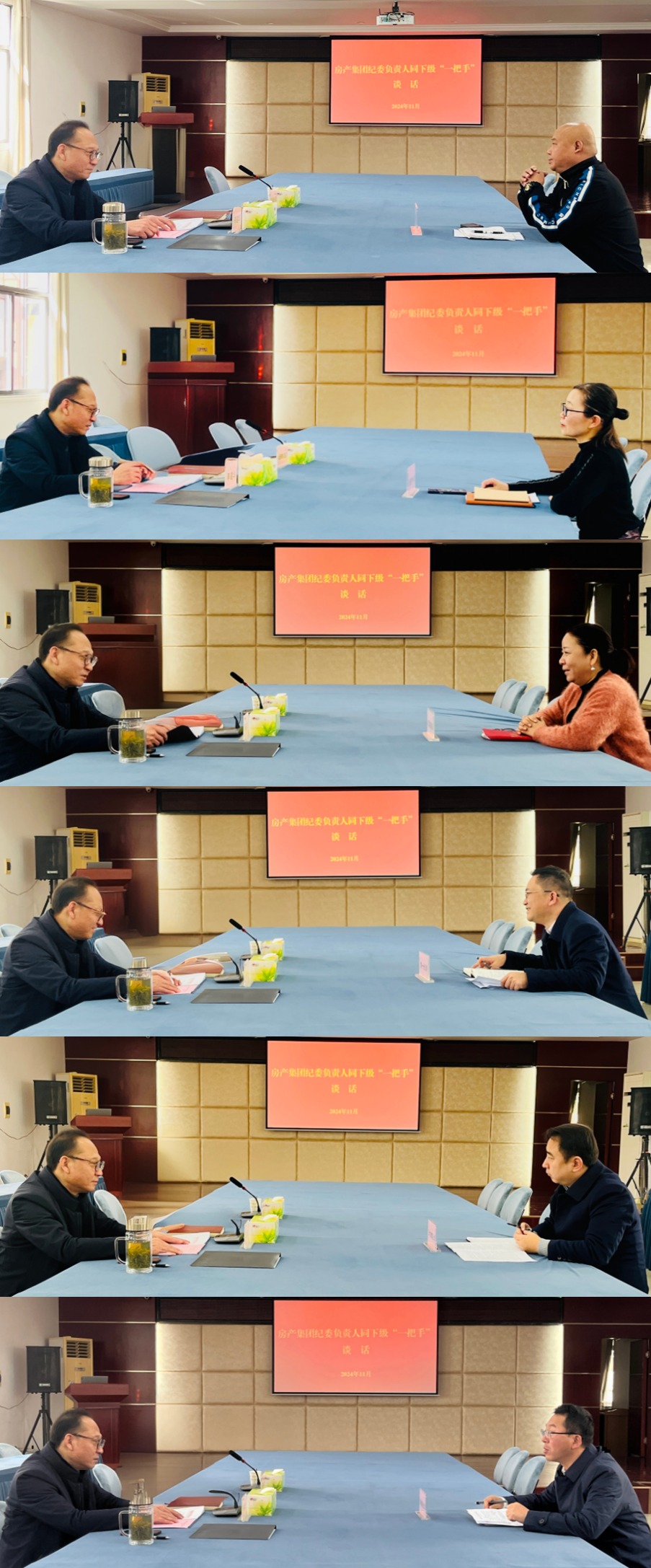 谈话中,李建华强调,开展同下级一把手谈话是深入推进全面从严治党,落实一岗双责的具体要求。他指出,各单位“一把手”必须把讲政治摆在第一位,提高政治站位和政治能力,扛牢政治责任,要充分发挥“头雁”示范引领作用,严守“六大纪律”,算好人生“七本账”,做到依规用权、秉公用权、廉洁用权,坚决反对特权思想和特权现象,主动接受广大职工群众监督。距离2024年结束还剩不到40天的时间,他要求,各单位“一把手”要锚定目标不放松,以使命必达的责任担当抓好冲刺收关,确保房产集团整合元年各项目标任务圆满完成。