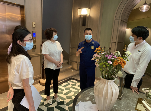 青岛路8号漫心酒店内,全体员工在一楼会议室集中观看2022年4月份《全国典型火灾案例》警示教育片,江岸区消防救援大队警官通过“火灾案例警示、消防法律责任、单位消防管理”三个章节,强调责任单位应具备“四个消防安全”能力,酒店一线员工要提高安全意识,掌握火灾初期“3分钟黄金时间”的处理方法,将险情降至最低。同时,还开展了消防设施设备的实操演练。