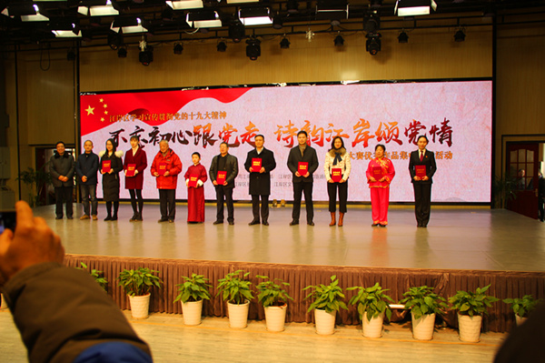 2018年1月12日上午,江岸区学习宣传贯彻党的十九大精神诗歌大赛优秀作品集中展示活动,在长春街小学大剧院举行,bat365在线登录入口(中国)官方网站职工周文龙、许婉君创作的《梦想的翅膀》荣获“十佳作品”奖,bat365在线登录入口(中国)官方网站工会选送的另外2篇原创作品《自豪啊,我们是城投人》、《献给可爱的房产人》获“优秀作品”奖。